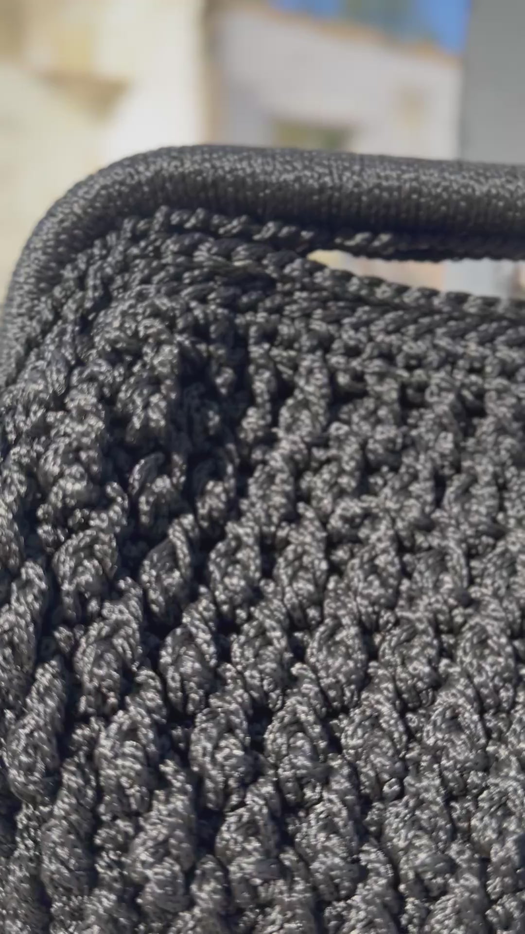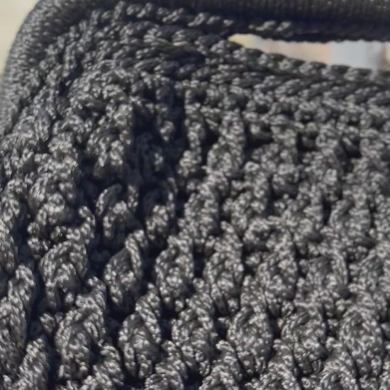 A minimal yet bold mini bag crafted with soft Afroditi yarn in classic black. Its structured silhouette is enhanced by a comfortable top handle, making it ideal for a confident day-to-night statement.