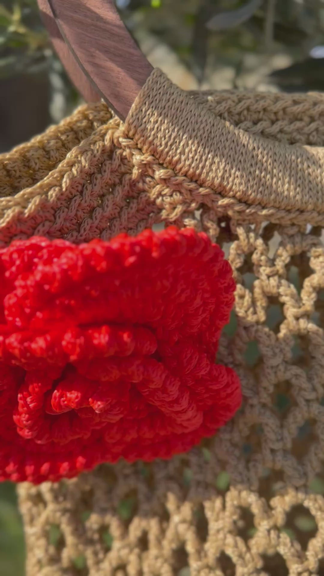 A breezy and practical net-style shopping bag, featuring elegant round wooden handles for a natural touch. Lightweight yet spacious, it's perfect for summer strolls, markets, or beach days.